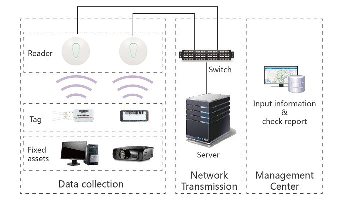 Lecteur RFID 2,4 GHz. Module de transmission de données complet et fiable. Il comprend un module RF, une unité de contrôle centrale, des ports d'entrée/sortie, un module Ethernet, une interface de communication série, des modules de mémoire non volatile, un module d'indication d'état de fonctionnement et une antenne intégrée.