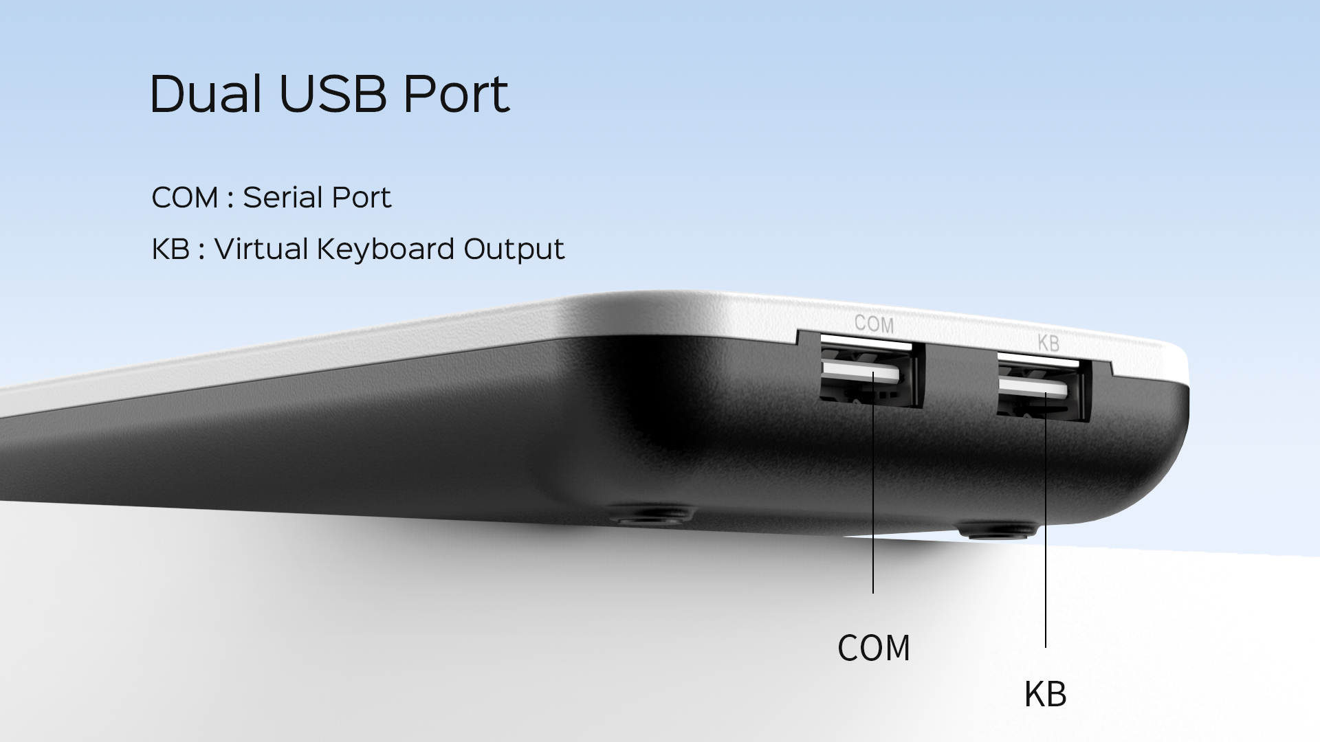 | 1, port d'émulation de clavier Plug&Play [KB] 2, port USB vers port série [Com] | ||||